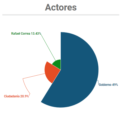 Otro punto importante registra de quién se habló en los medios de comunicación analizados. El presidente Lenín Moreno y la recientemente designada Vicepresidenta, María Alejandra Vicuña, fueron quienes obtuvieron mayor espacio al alcanzar el 49% de la muestra.