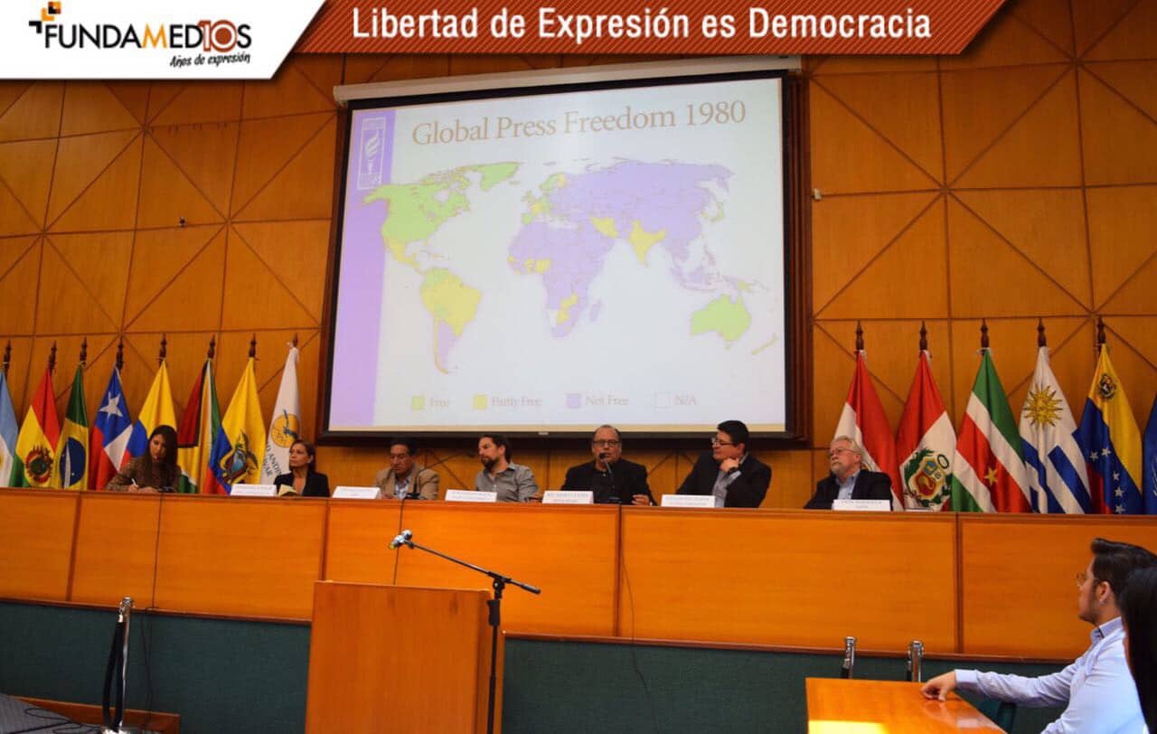 Con el objetivo de conocer la situación actual de la libertad de expresión en Venezuela, Perú, Colombia, Bolivia y Ecuador inició el foro conformado por los panelistas: Ricardo Uceda, director ejecutivo del Instituto Prensa y Sociedad de Perú (IPYS-Perú); Marianela Balbi, directora ejecutiva del Instituto Prensa y Sociedad de Venezuela (IPYS-Venezuela); César Ricaurte de Fundamedios; Franz Chávez, director ejecutivo de la Asociación Nacional de la Prensa de Bolivia (ANP); Jonathan Bock, coordinador del Centro de Estudios de la Fundación para la Libertad de Prensa (FLIP-Colombia) y Don Podesta, de la National Endowment for Democracy (NED, por sus siglas en inglés).