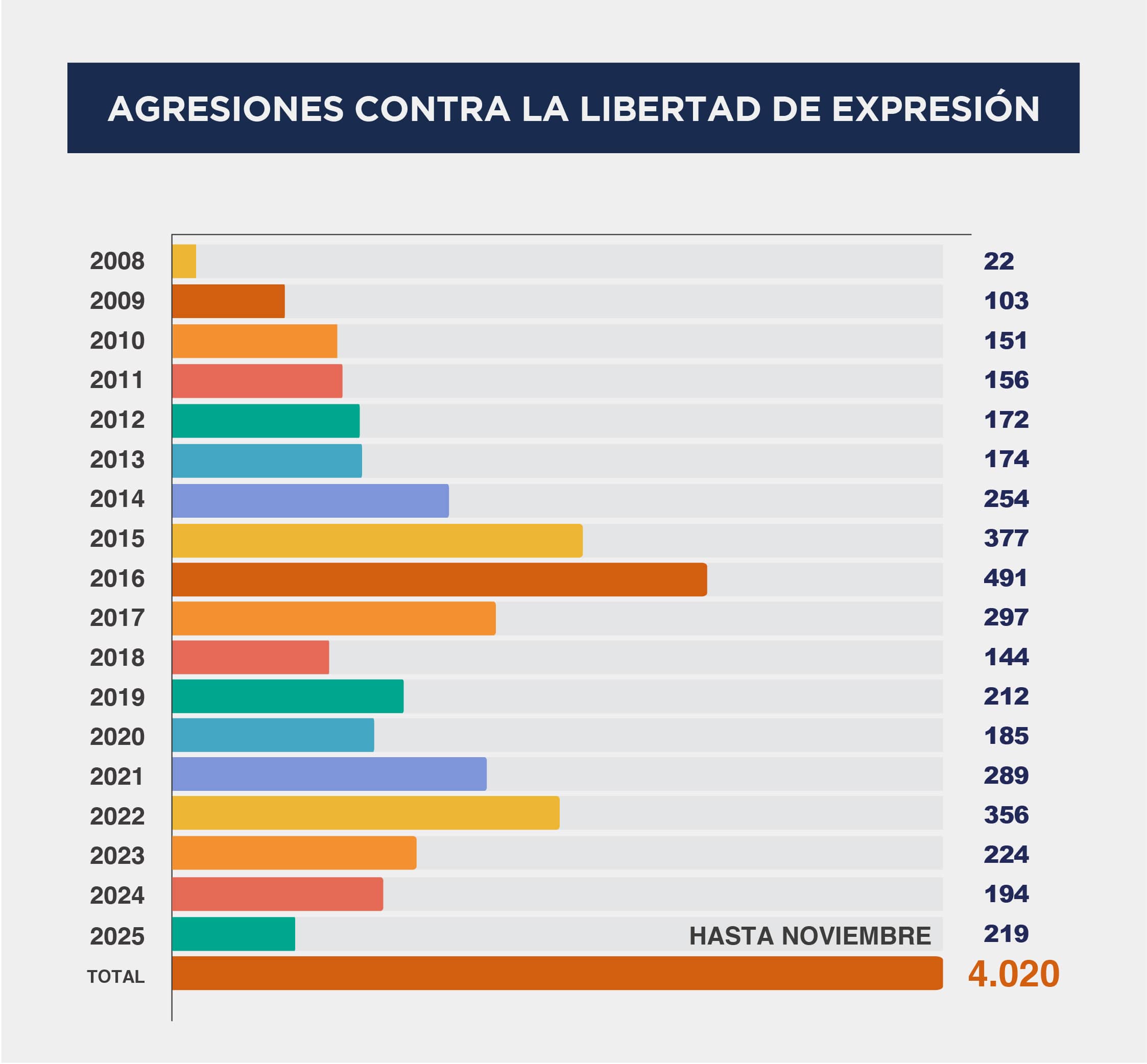 - 2025: 41 casos (Hasta noviembre 2025)